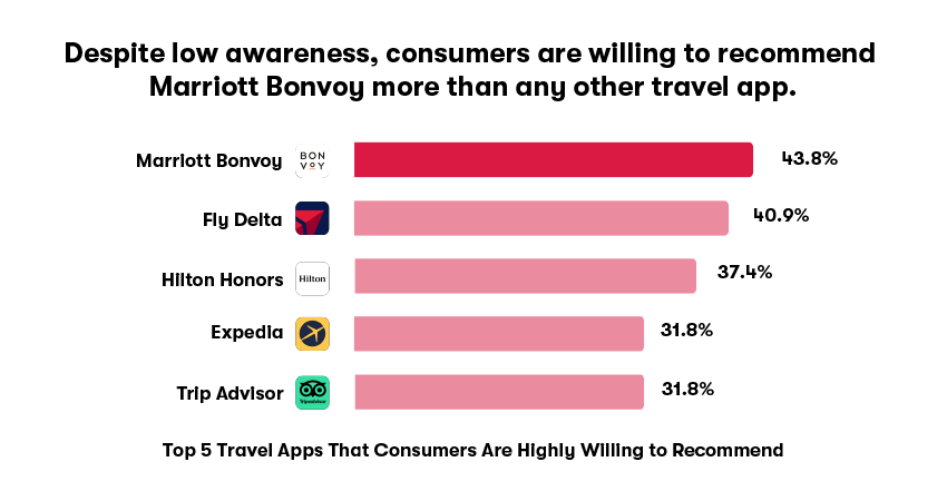If you haven’t yet seen our BRAG Brand Insights, it reveals what customers think of the leading apps we use when we want to relax, connect, or be entertained. And while streaming video, music, or shopping might bring us immediate gratification, travel is our ultimate indulgence! While we may not be able to travel “in the moment”, we can always open up out favorite travel app and dream of destinations to come.