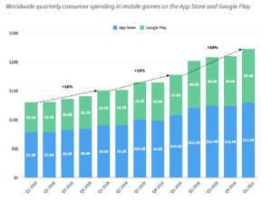 The State of Mobile Gaming 2021 says revenue growth only accelerated during the COVID-19 pandemic and users spent more than $22 billion in mobile games in Q1 2021. The report also stated that games earned more than $20 billion globally for the first time that quarter. Let’s deep dive into this report which includes a market overview by region, market forecast, game genre trends, monetization trends, and advertising trends.
