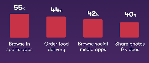 Another concept for brands to focus on is that while watching the World Cup, 28% of viewers will spend their time in news/sports news apps, 24% in sports gaming apps, 24% in social media apps, and 13% in communication apps. This shows that in-game ads for brands may be the best way to capture their target audience.